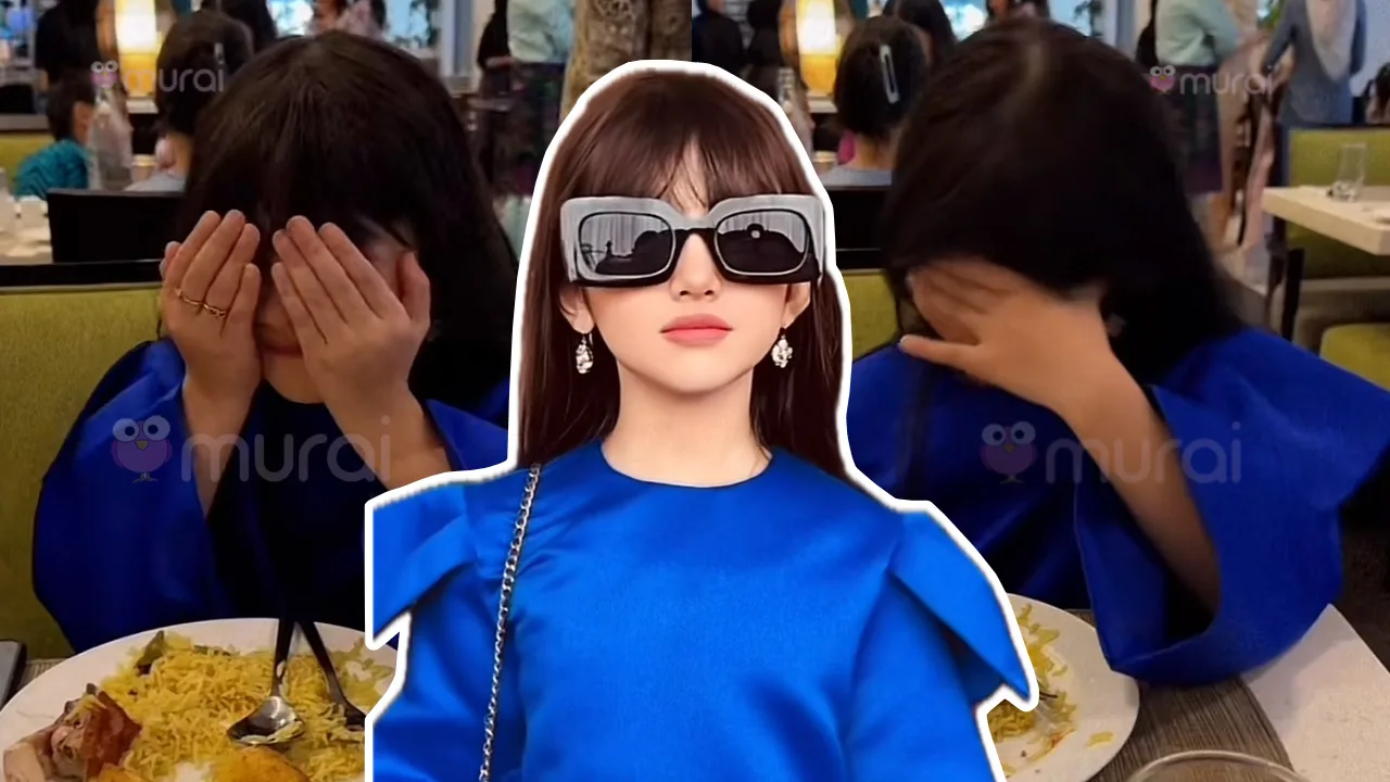 “Betul-bertul anak Che Ta sebab dia tak makeup mata so dia pakai sunglasses, nak makan takut tak nampak, tutup mata. Heyy sayang, Over la hang ni haha”-Kata Che Ta