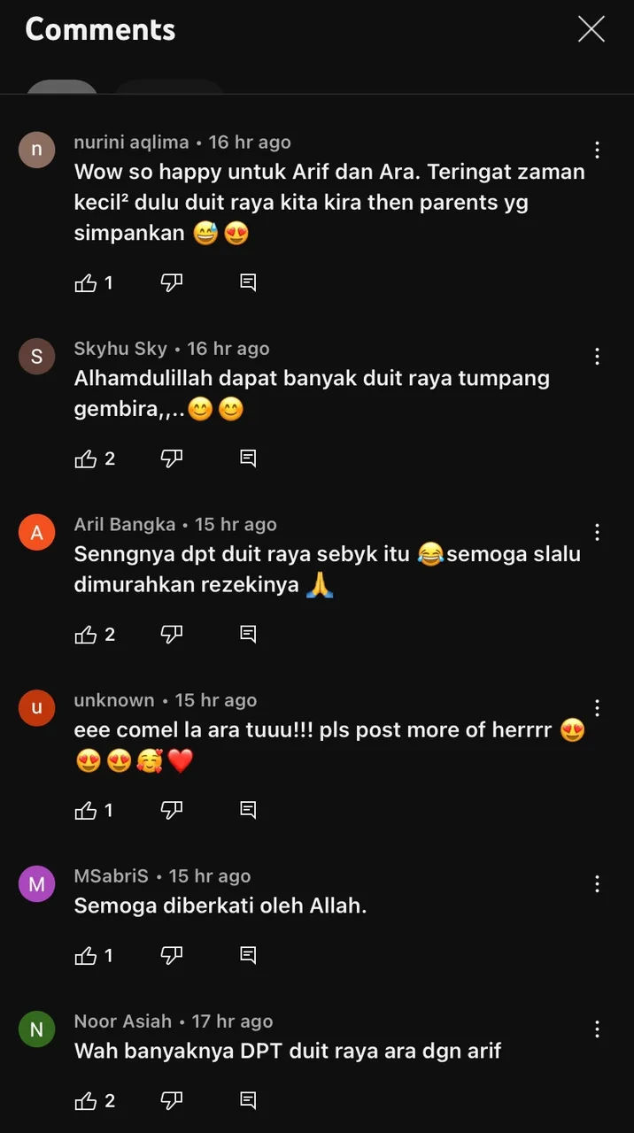 “Wow so happy untuk arif dan ara. Teringat zaman kecil2 dulu duit raya kita kira then parents yang simpankan”-kata mereka