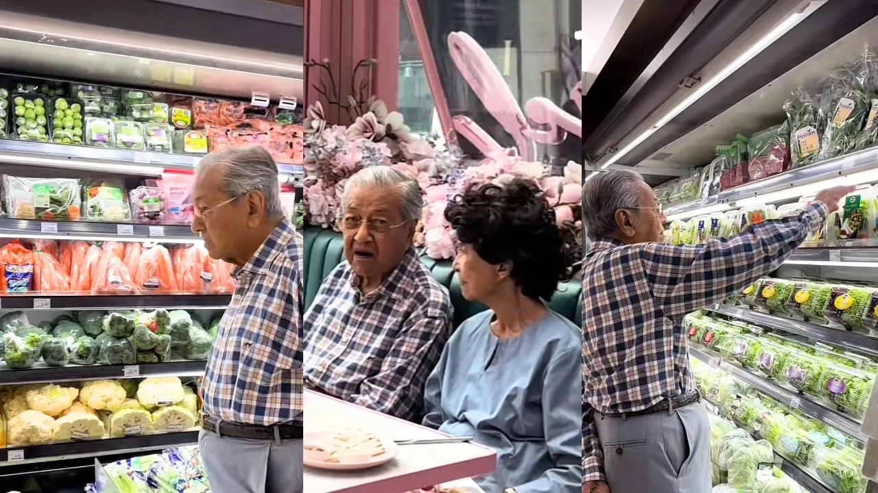 Di dalam video berkenaan memaparkan Tun Siti Hasmah bersama suaminya iaitu Tun Dr Mahathir membeli barangan dapur.