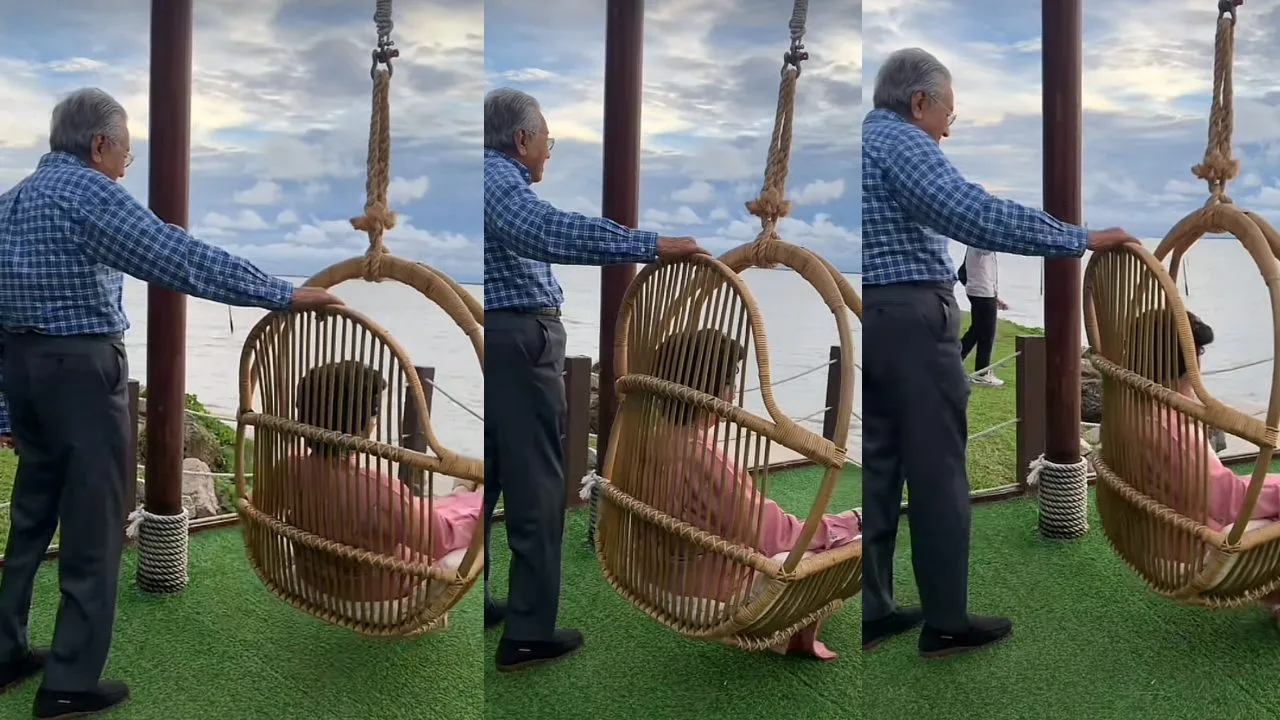 Di dalam video tersebut, memaparkan Tun Mahathir yang sedang menolak buaian yag diduduki oleh Tun Siti Hasmah itu.