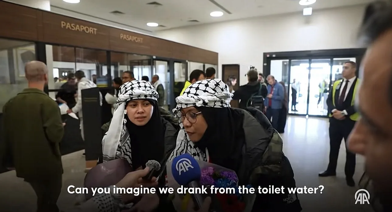 @anadoluagency ‘We drank toilet water’ Speaking to Anadolu, Malaysian singer-actors Heliza Helmi and Hazwani Helmi, who took part in Global Sumud Flotilla mission to deliver aid to Gaza, arrived in Istanbul described treatment by Israeli forces after vessel was attacked #globalsumudflotilla🇵🇸