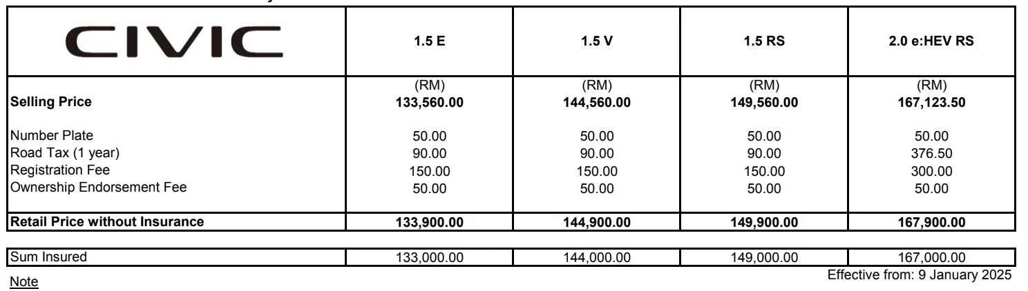 Berikut harga yang ditawarkan mengikut varian;