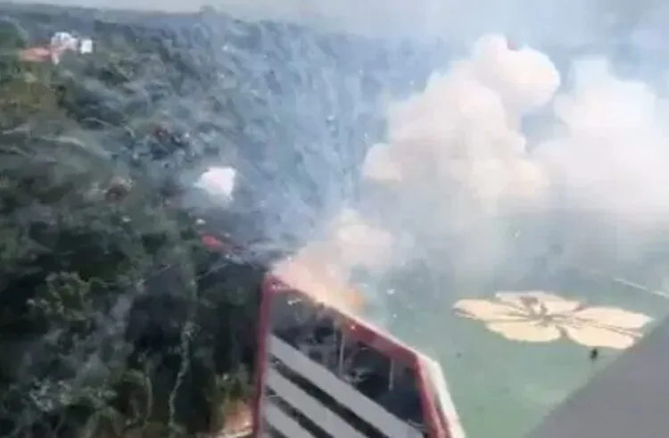Dalam video itu, boleh dilihat seseorang melarikan diri ketika bunga api meletup di atas bumbung. Sejurus selepas asap hilang, sekumpulan orang kelihatan bergegas membantu seorang kakitangan yang mengendalikan pertunjukan bunga api tersebut.
