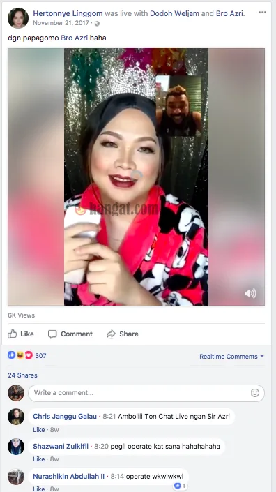 Namun, murai.my difahamkan bahawa Papagomo atau nama sebenar beliau Wan Muhammad Azri Wan Deris pernah berskandal dengan seorang jurusolek terkenal dari Kota Kinabalu, Sabah yang lebih dikenali sebagai Hertonnye Linggom (Tonn) di sosial media dan mereka berdua pernah berbual mesra melalui video call sebelum ini.