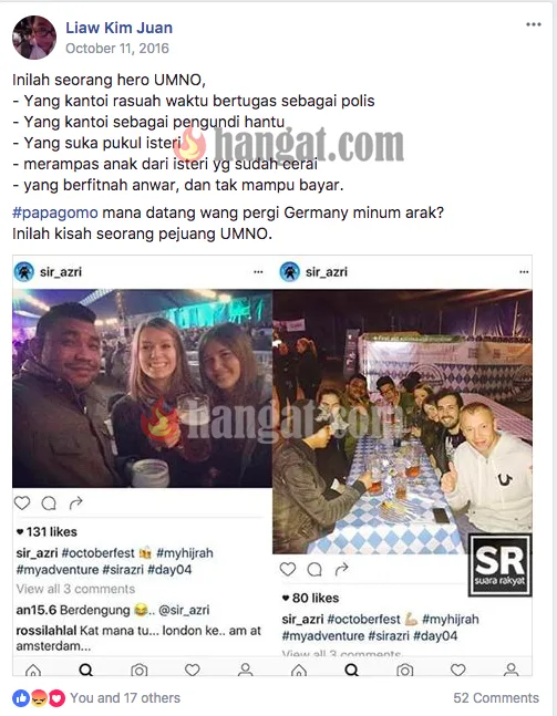 Papagomo yang dianggap “hero UMNO” juga pernah dikecam kerana meminum arak di Germany dan netizen mempersoalkan dari mana duit Papagomo dapat untuk ke Germany? Beliau juga dianggap panas baran sering memukul isteri dan juga merampas anak-anak dari isteri pertama. Jangan pula lepas ni kuncu-kuncu Papagomo kata itu sekadar gambar sahaja atau rantai emas tu bukan tulen.