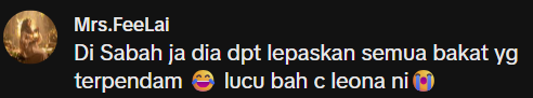 “Di Sabah ja dia dapat lepaskan semua bakat yg terpendam. Lucu bah si leona ni.”