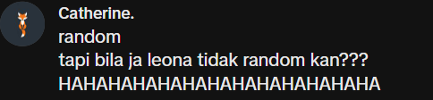 “Random, tapi bila ja leona tidak random kan??? HAHAHAHAHAHAHAHAHAHAHAHAHA.”