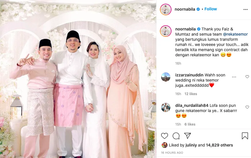 “Adik beradik kita memang sign contract dah dengan Reka Teemor kan,” tulis Nabila di Instagram miliknya