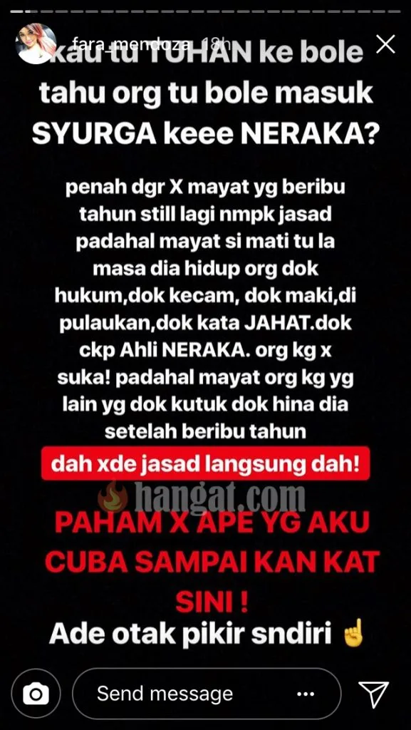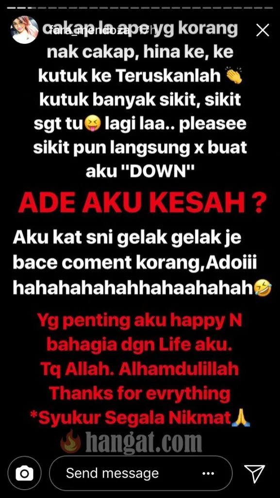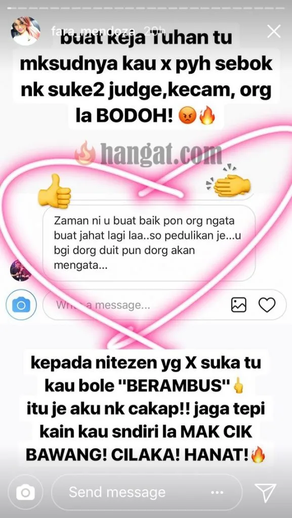 Sejurus selepas itu, Fara di Insta-story nya dikatakan telah mengamuk kerana pelbagai komen dari netizen yang baginya seperti keterlaluan.
