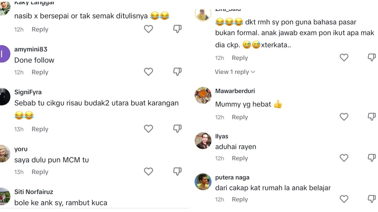 “Dekat rumah saya pun guna bahasa pasar bukan formal, anak jawab exam pun ikut apa mak dia cakap”-tambah mereka