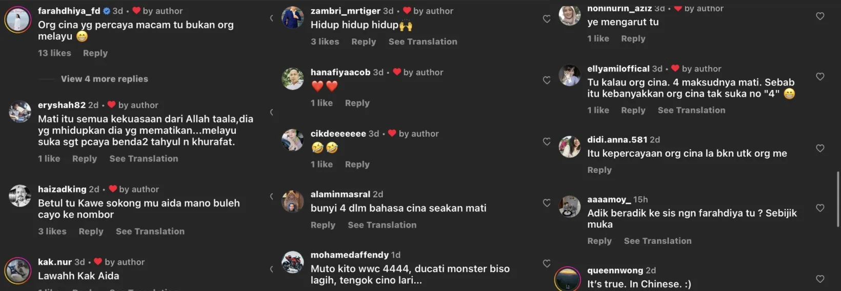 Rata-rata netizen setuju dengan pendapat A.Aida itu. Mereka menyatakan bahawa hanya orang cina sahaja yang mempercayai hal tersebut.