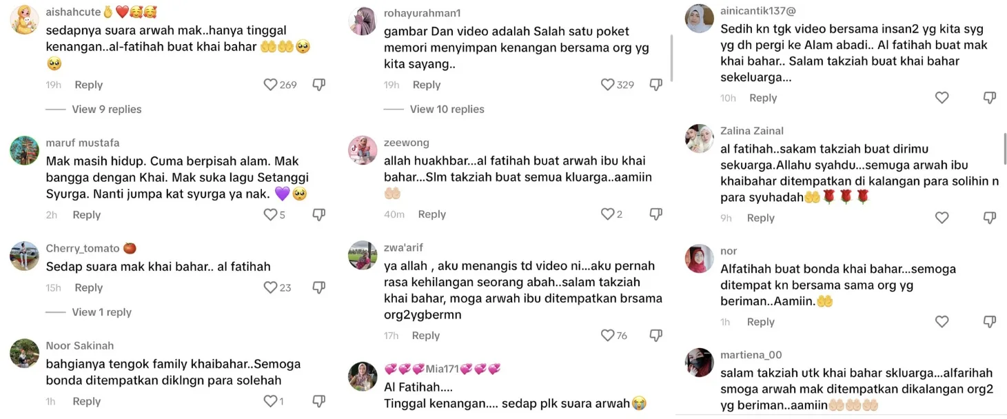 Rata-rata ramai yang sebak atas kehilangan ibu tercinta Khai Bahar itu. Mereka juga mengatakan bahawa video rakaman tersebut merupakan perkara yang paling bermakna kerana menjadi tatapan untuk kenangan yang dibina bersama ibunya itu.