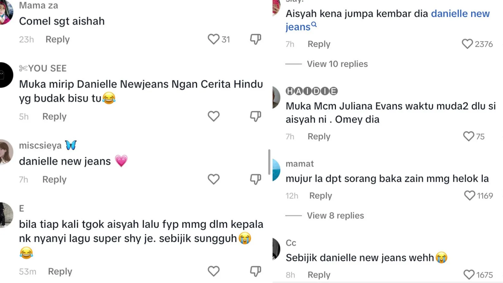 “Bila tiap kali tengok Aaisyah lalu fyp memang dalam kepala nak nyanyi lagu new jeans super shy je, sebijik sungguh”