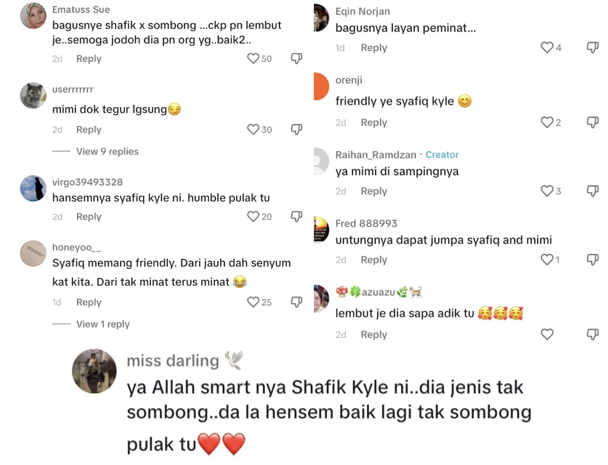 Rata-rata peminat yang melihat video tersebut memuji sikap Syafiq Kyle yang tidak sombong dan peramah itu.