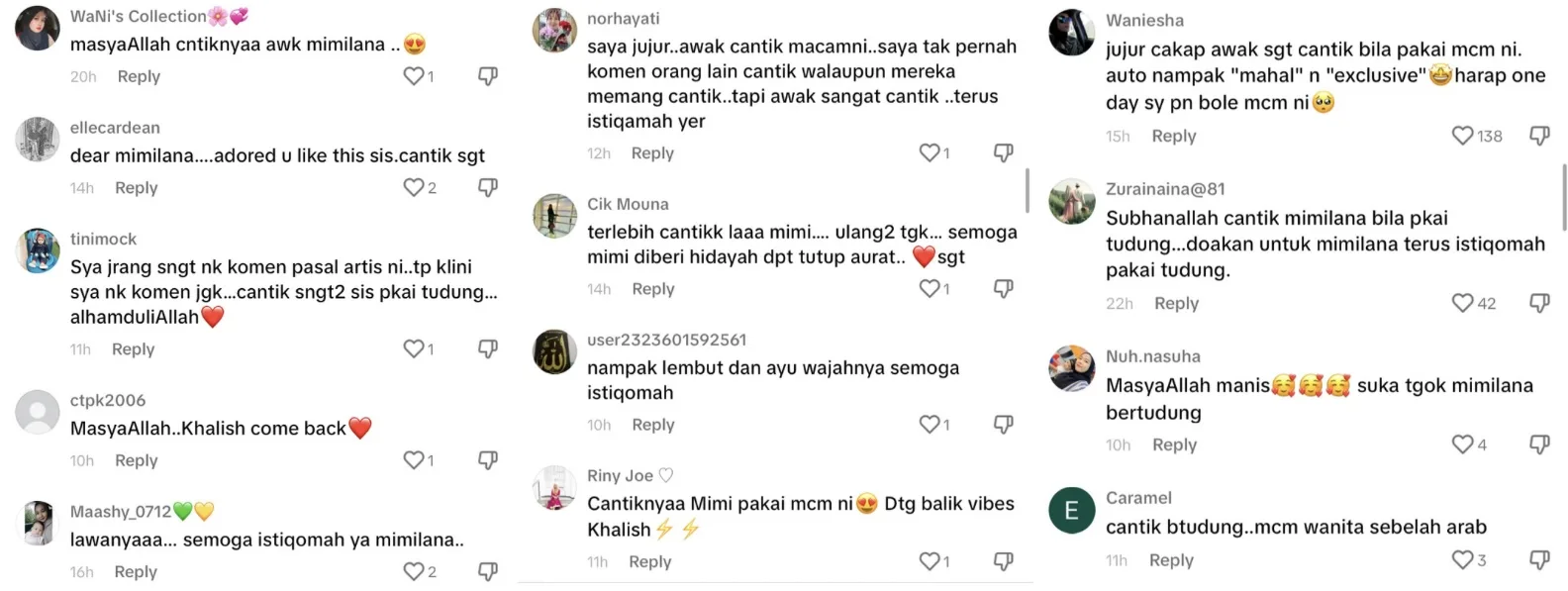 “Subhanallah cantik Mimi Lana bila pakai tudung, doakan untuk Mimi Lana terus istiqomah pakai tudung”