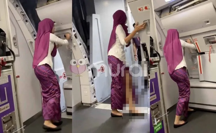 Baru-baru ini, di laman X (Twitter) sebuah video pendek menyaksikan seorang pramugari di sebuah syarikat penerbangan tempatan curi perhatian netizen. Pramugari itu yang sedang bertugas di dalam pesawat mengenakan tudung namun aurat masih terbuka. Kain atau skirt labuh yang dikenakan terselak tanpa sengaja sehingga menampakkan betisnya ketika dia menutup pintu pesawat.