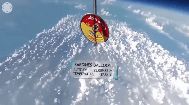 Bagi menyaksikan sejarah baru Ayam Brand, mereka telah berkongsi video altitud tinggi yang dirakamkan di Kahang, Johor di Malaysia. Video-video berkenaan diambil dari ketinggian 29,000 meter dari aras laut membolehkan permandangan menakjubkan kawasan serantau yang meliputi Malaysia, Singapura dan Indonesia dirakamkan.