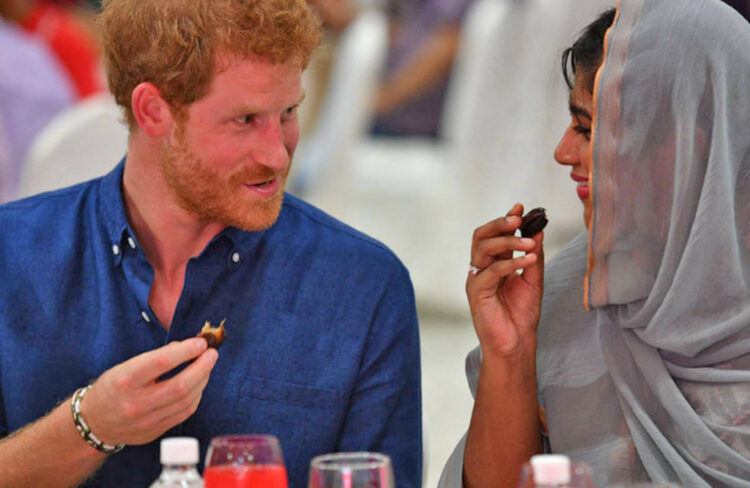 Gambar Putera Harry makan bauh kurma dan berbuka tersebar dimana beliau menghadiri majlis berbuka puasa bersama dengan anak-anak muda di Singapura. Putera dari Britain ini dilihat berkongsi kurma dan bubur dengan duta keamanan iaitu Nazhath Faheema.