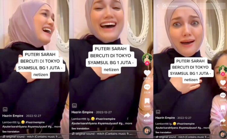 Di dalam video berkenaan, didapati Puteri Sarah gelak sakan mengenai pertanyaan netizen, di mana mereka menanyakan bahawa perbelanjaan Puteri Sarah pergi bercuti di Tokyo bersama anak-anak nya merupakan wang pemberian Syamsul sebanyak RM 1 Juta.