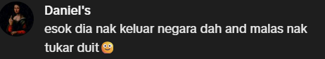 “Esok dia nak keluar negara dah and malas nak tukar duit.”