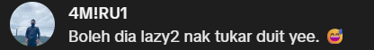 “Boleh dia lazy-lazy nak tukar duit ya.”