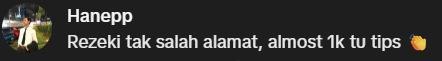 ” Rezeki tak salah alamat, almost 1k tu tips.”