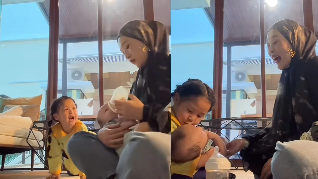 Di dalam video berkenaan, memaparkan Rina yang meminta kepada Maryam untuk mendukung adik lelakinya itu. Namun reaksi Rina mencuit hati ramai apabila beliau berjaya mendukungnya itu.