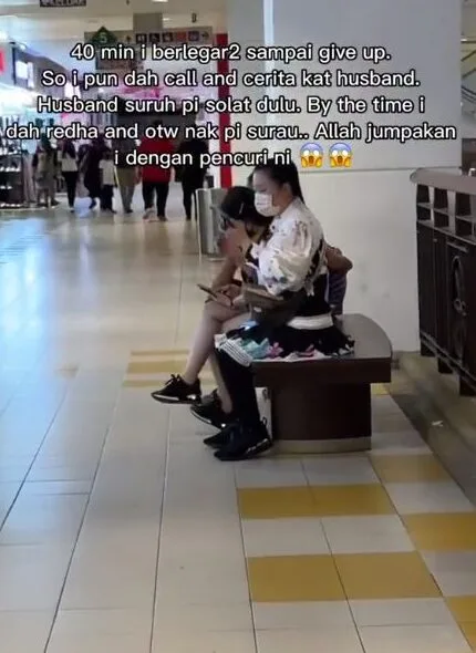 40 minit, berlegar-legar sampai dah giveup. so i pun dah call and cerita dekat my husband. Husband suruh i pergi solat dulu. by the time i reda and on the way nak ke surau, Allah pertemukan i dengan pencuri ni.