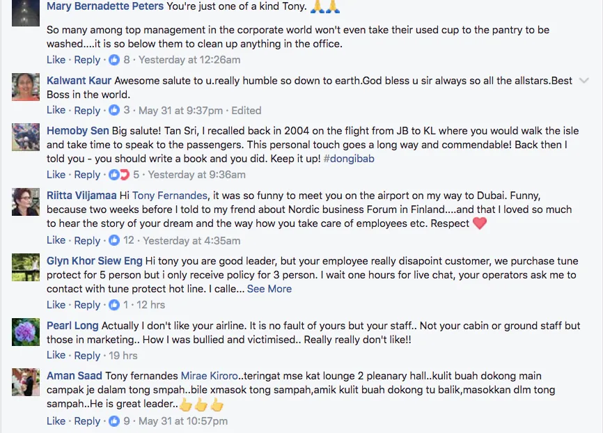 Persis seorang ‘cleaner’ itulah yang dilakukan oleh Ketua Pegawai Eksekutif Air Asia ini, Tony Fernandes yang sangat menghargai kesemua krewnya. Menerusi komen dari netizen, ramai yang memuji tindakannya yang sangat bersahaja.