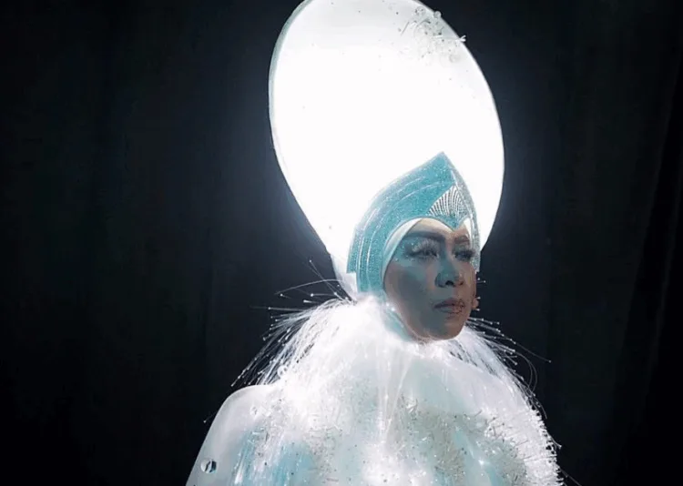 Terbaru gaya hijab Melly kembali mendapat perhatian netizen.[murai.my] Melly digambarkan sebagai ‘Ibu Alam semesta’ dengan cara yang sangat moden dan futuristik. Lampu LED diseluh penampilannya mewakili bintang dan planet.