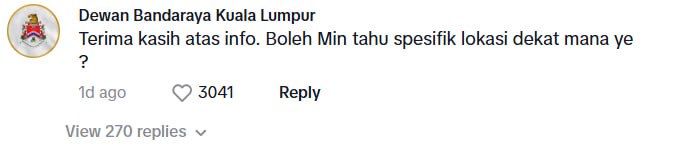 Perkongsian itu kemudian mendapat perhatian DBKL, yang mengucapkan terima kasih kerana menyalurkan maklumat tersebut, selain meminta pemilik video memaklumkan lokasi kejadian.