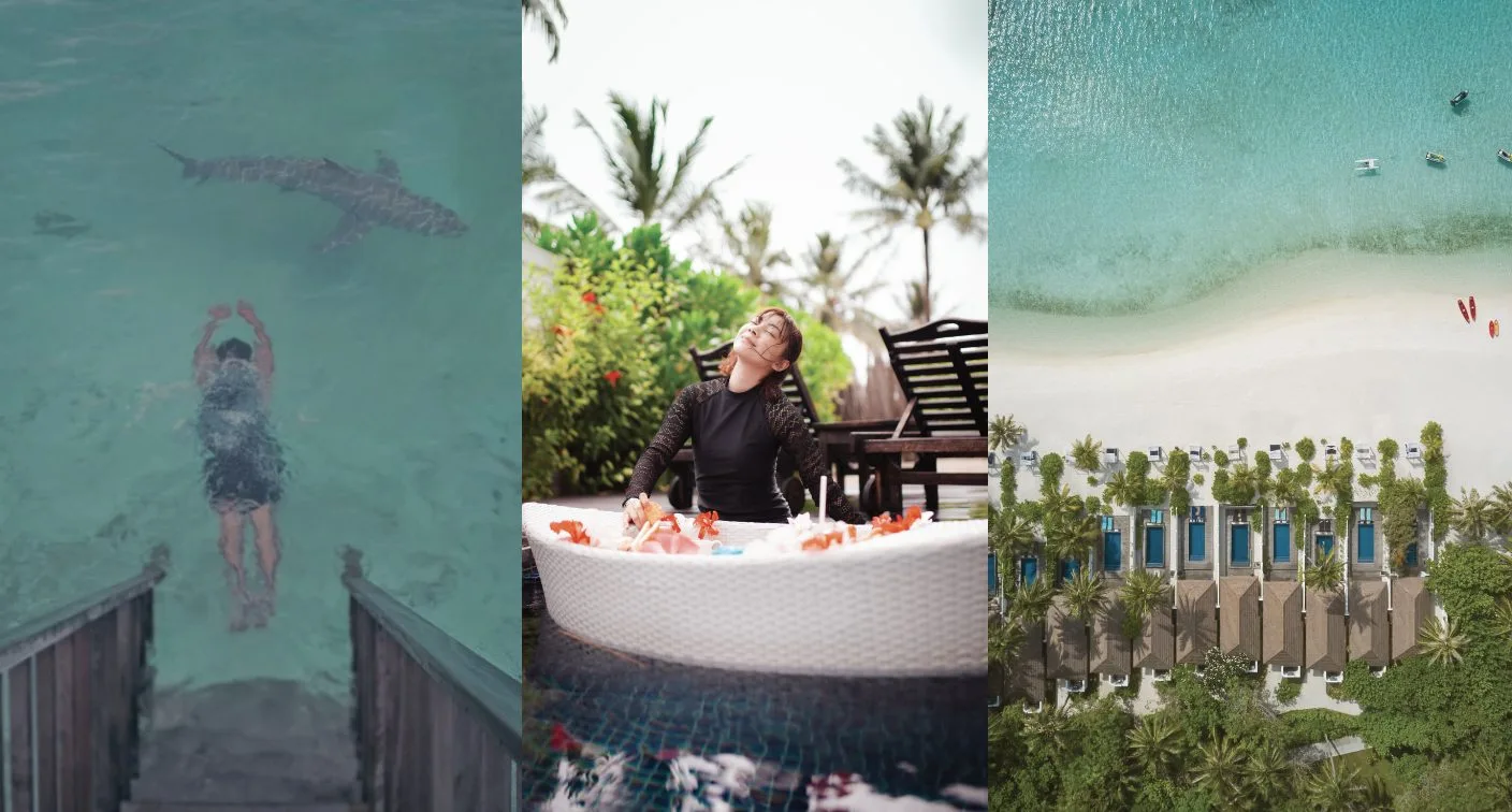 Setelah matahari terbenam, kami menuju ke hujung jeti villa air untuk menyaksikan ikan hiu yang mudah kelihatan. Malah anda berenang bersama ikan-ikan ini. Ini adalah pengalaman yang luar biasa dan memberikan kami peluang untuk lebih mendalami keindahan laut.