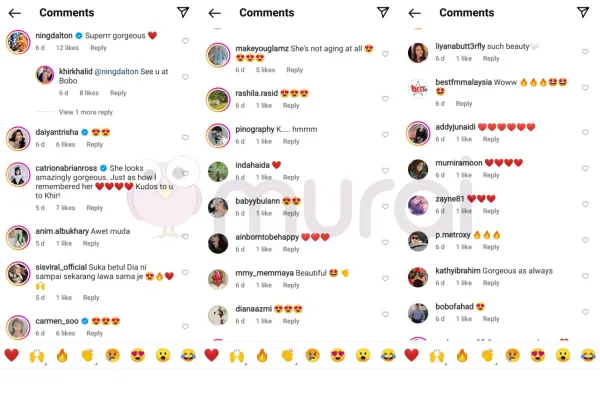 Murai MY menjengah keruangan komen muatnaik yang dikongsikan Khir, rata-rata ramai selebriti tempatan dan warganet memuji kejelitaan wajah Camelia.
