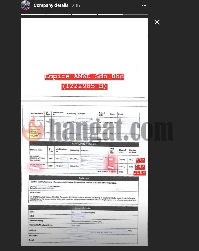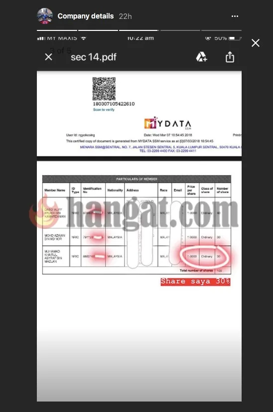 Asyraf Tunjuk Bukti Sebagai Pemegang Saham