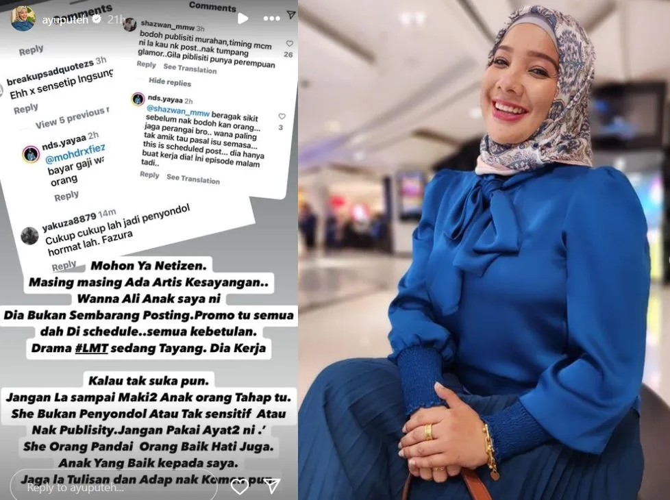 Ayu berkongsi perkara itu menerusi sebuah hantaran yang dimuat naik di Instastory miliknya.
