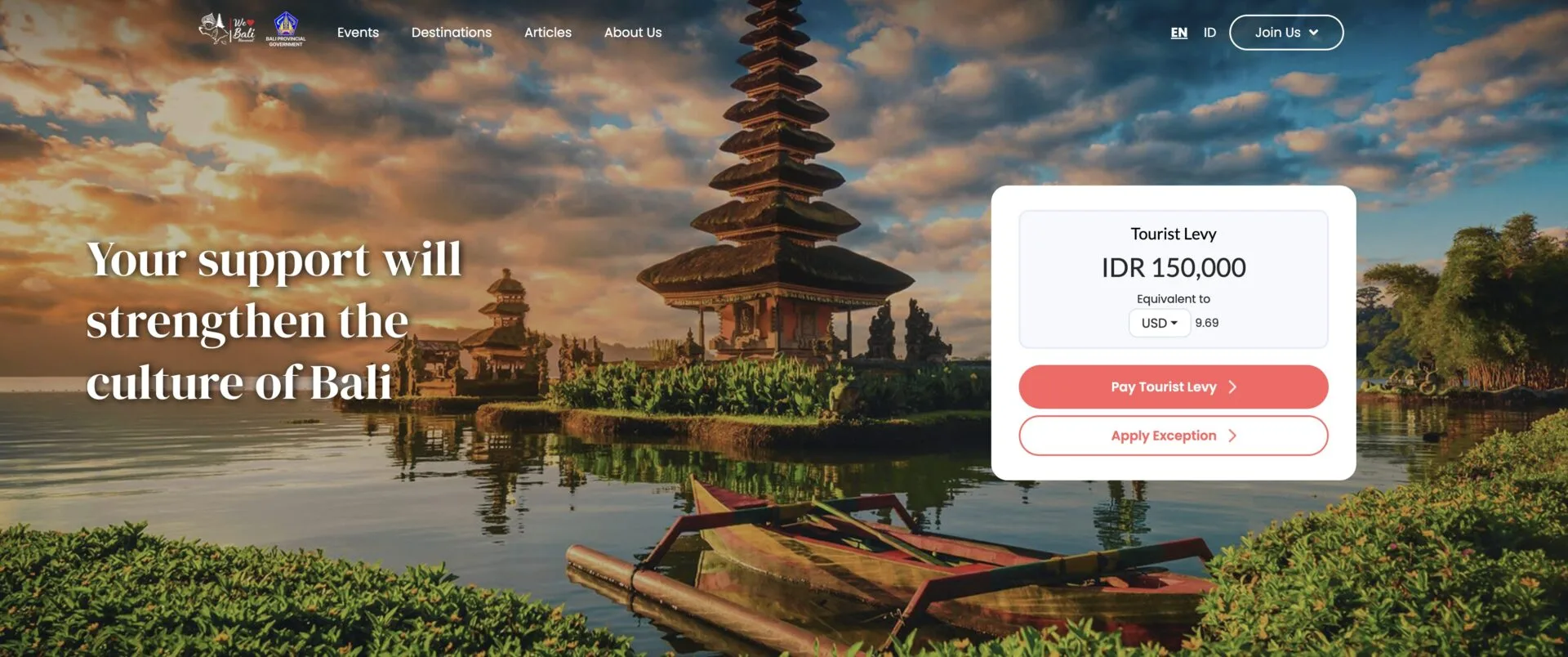 Bayaran Levi ini adalah sebagai bentuk sokongan yang bertujuan untuk melindungi adat, tradisi, seni dan budaya tempatan masyarakat Bali. Usaha dan inovasi akan terus dilakukan untuk mengekalkan budaya dan persekitaran semula jadi di Bali. Kualiti perkhidmatan juga akan terus dipertingkatkan.