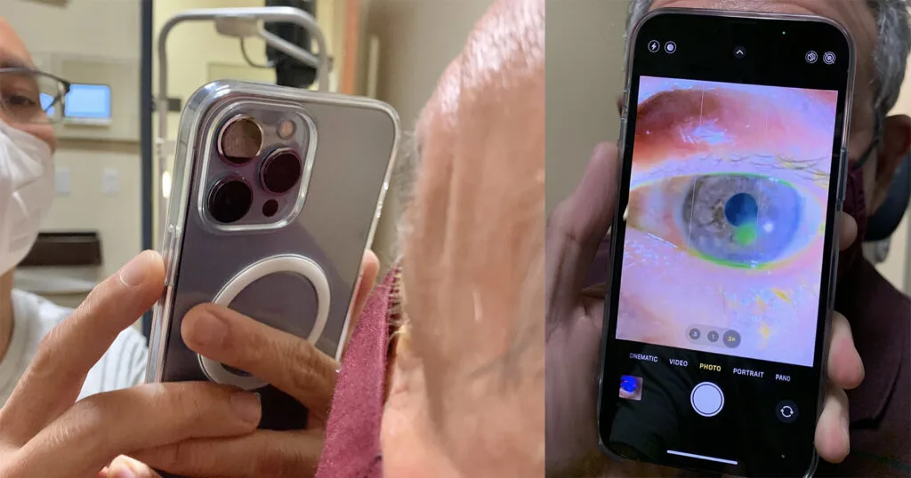 Korn memilih IPhone 13 Pro kerana ianya lebih praktikal daripada kamera yang digunakannya sebelum ini. “Saya pernah menggunakan kamera Nikon D800 dengan lensa makro 105mm f /2.8. Saya mengambil foto mata pesakit menggunakan kamera itu tetapi perkara pertama saya harus mengeluarkan memori kad, memuat naik dan memasukkannya ke dalam rekod komputer saya.”
