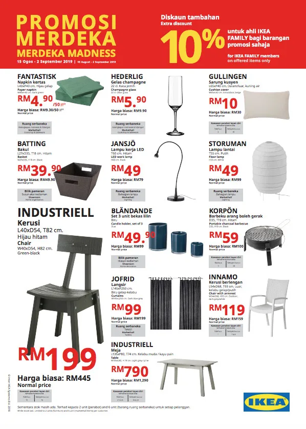 Selain itu, diskaun tambahan 10% akan diberikan kepada ahli IKEA FAMILY bagi barangan promosi sahaja. Menarik bukan! Cepat sambar sementara stok masih ada dan peringatan buat pembeli, promosi terhad kepada 2 unit (perabot) dan 6 unit (barang ruang serbaneka) untuk setiap pelanggan.