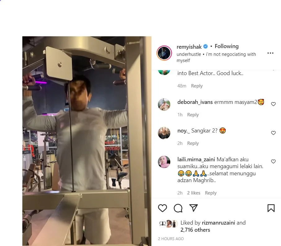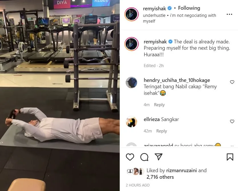 Di laman Instagram milik Remy, dia ada berkongsikan kepada peminatnya mengenai videonya di gym sambil melakukan beberapa rutin senaman.