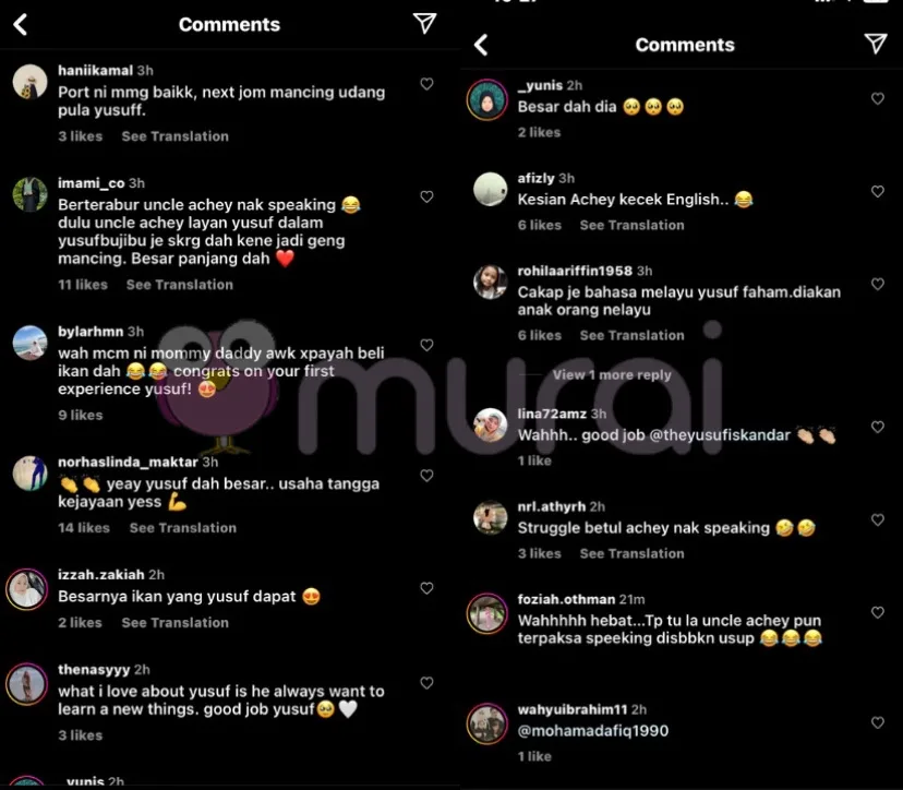 Di ruang komen pula, rata-rata mereka terhibur mengenai Achey yang cuba untuk bercakap inggeris dengan Yusuf,