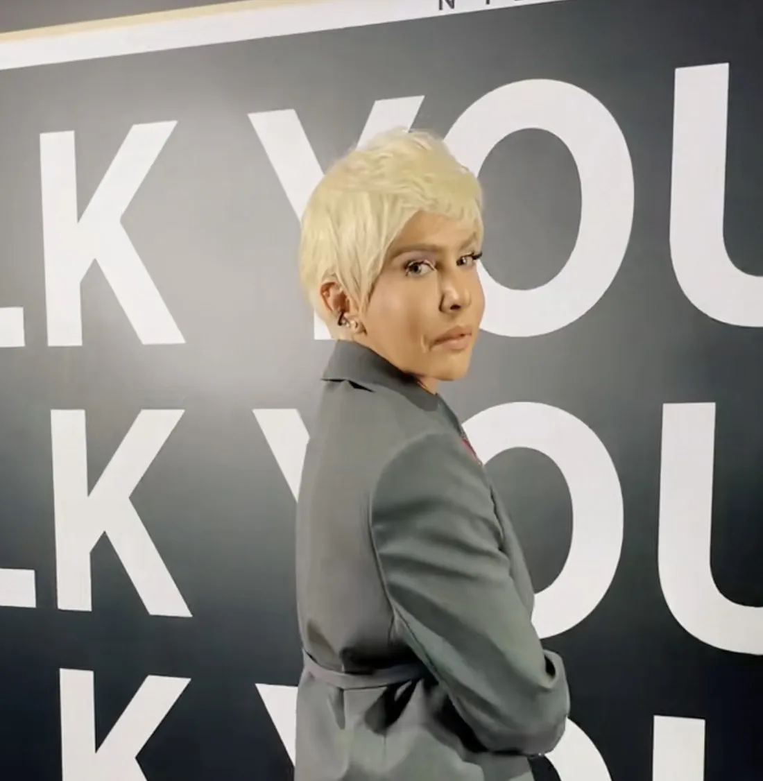 Hadir ke pertunjukan ‘Men in Play’ oleh The Melium Group, Zahida bukan main-main. Dia tampil dengan blazer baggy warna silver gelap yang sangat on trend. Tapi highlight sebenar tentulah rambut blonde platinum dia yang betul-betul mencuri spotlight terang, tajam, berani!
