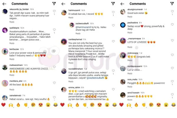 Melihat muatnaik yang dikongsikan penyanyi ini, rata-rata warganet yang menonton program realiti nyanyian berkenaan memuji suara Zazleen.