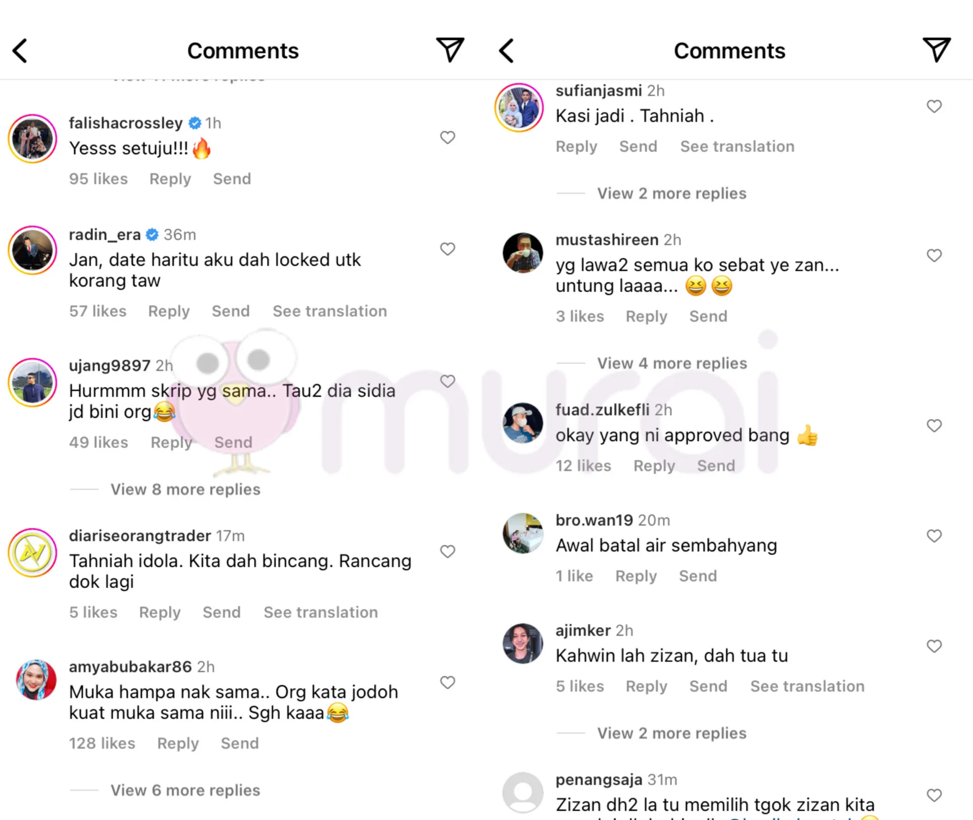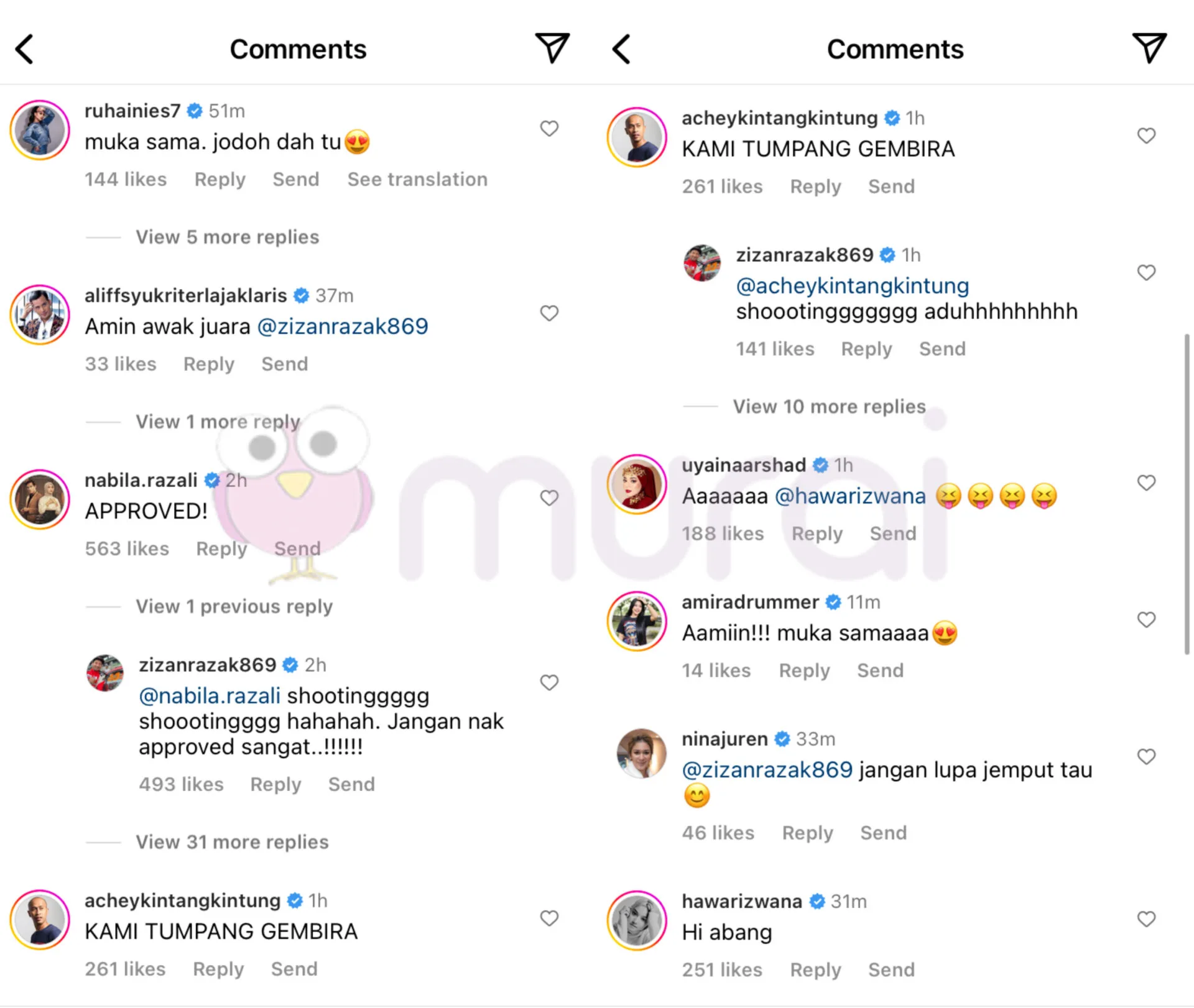Tinjauan Murai MY di ruangan komen mendapati, rata-rata netizen dan rakan selebriti meluahkan rasa teruja, malah ada yang turut mendoakan agar Zizan dan Hawa dijodohkan bersama.