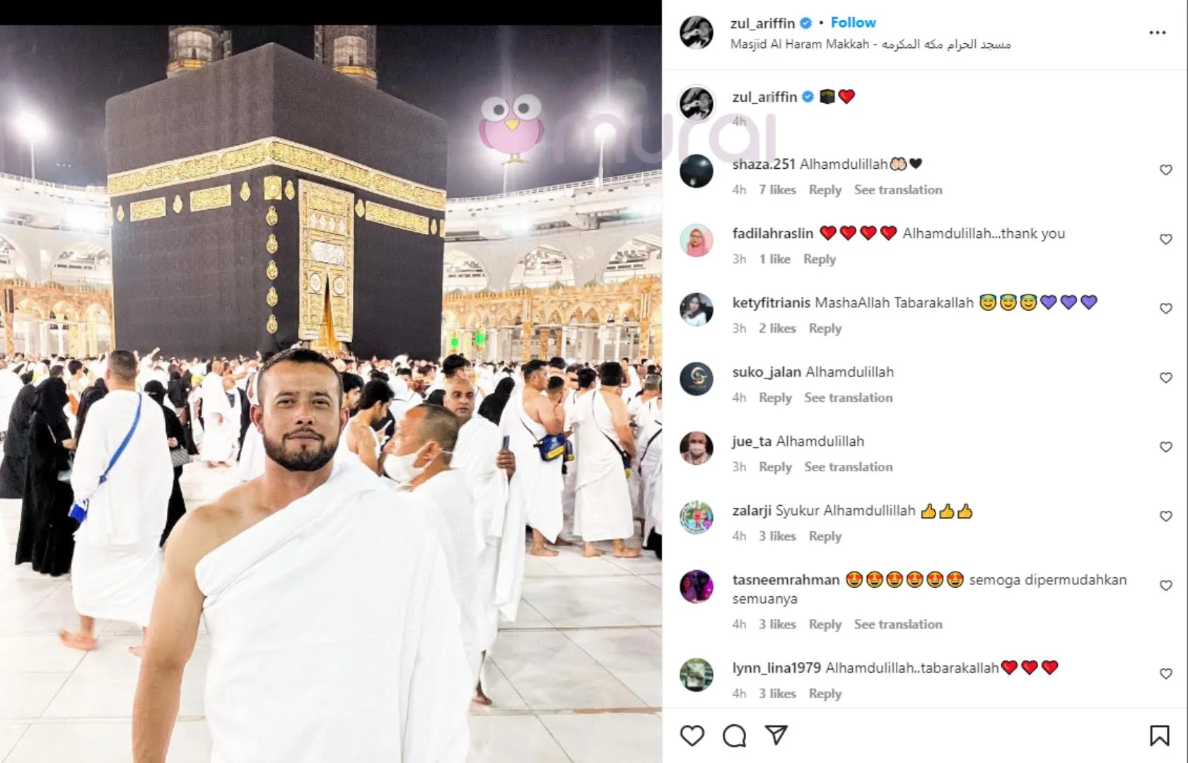 Semoga Zul Ariffin memperoleh umrah yang mabrur. Sama-sama kita doakan agar kita juga dapat menjejakkan kaki ke Tanah Suci Mekah kelak..
