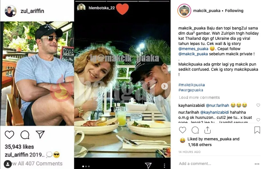 Lebih menghangat gosip mengaitkan mereka berdua apabila foto dimuat naik oleh Zul dan Glembotska bagai menunjukkan lokasi dan masa yang sama.